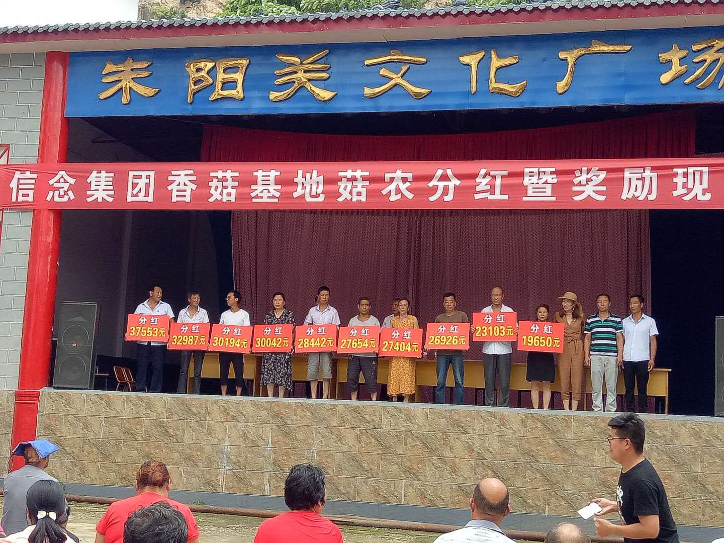 7月18日上午,朱陽關(guān)鎮(zhèn)召開信念集團香菇基地菇農(nóng)首期分紅暨獎勵現(xiàn)場會,鎮(zhèn)黨委副書記、鎮(zhèn)長李青波與信念集團負責人親手將28.9萬元分別送到參與首批入股的14戶農(nóng)戶手中,并對具有代表性的農(nóng)戶進行獎勵。朱陽關(guān)鎮(zhèn)黨委委員、紀委書記陳磊主持會議。