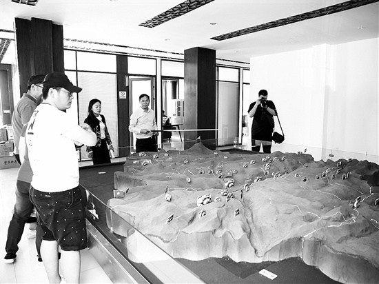 圖為該集團(tuán)董事長葉傳林(右二)在盧氏縣地圖沙盤前講解扶貧產(chǎn)業(yè)布局情況。