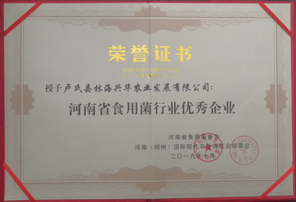 盧氏林海興華公司以其科技領(lǐng)先、技術(shù)卓越、服務(wù)一流、產(chǎn)品過硬等優(yōu)勢,在河南省食用菌協(xié)會(huì)表彰大會(huì)上榮獲“有盼頭”河南省十大食用菌品牌、河南省食用菌行業(yè)優(yōu)秀企業(yè),授予盧氏縣“河南省十大食用菌基地縣”,河南省國際現(xiàn)代農(nóng)業(yè)博覽會(huì)組委會(huì)和河南省食用菌協(xié)會(huì)還授予葉傳林同志、張海慶同志“河南省食用菌行業(yè)優(yōu)秀人才”榮譽(yù)稱號(hào)。本次大會(huì),盧氏林海興華公司可謂是大放異彩、滿載而歸。