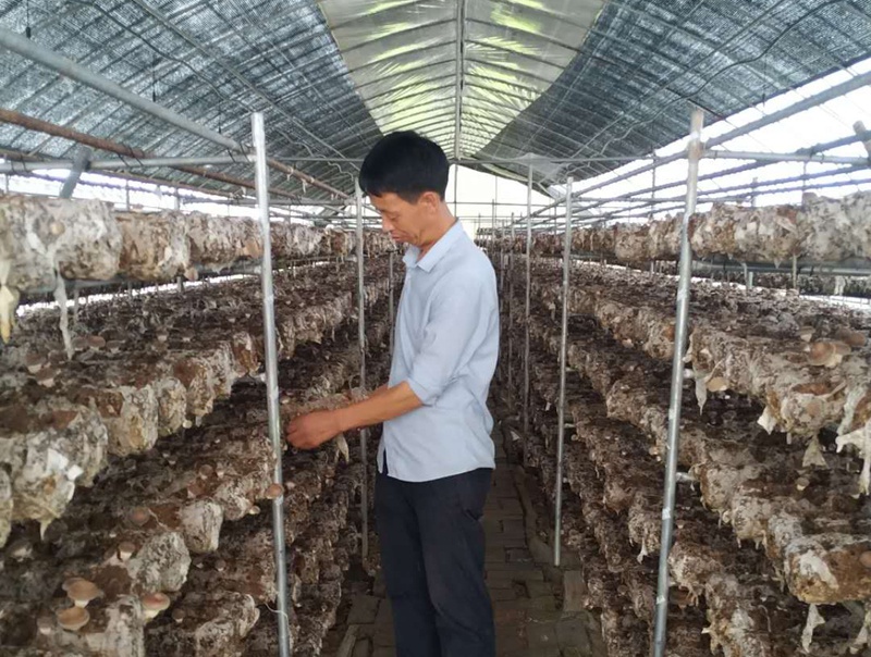 李偉波正在察看香菇長(zhǎng)勢(shì)