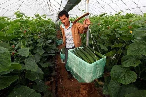 早上7點(diǎn)半,王發(fā)有的兒子與兒媳在大棚里快速采摘著成熟的黃瓜,裝進(jìn)扁擔(dān)與菜筐,丈夫挑著快步走出去,妻子則搬起筐子在后跟隨。此時(shí)此刻,沙河鄉(xiāng)近百個(gè)已建成的大棚,正上演著同樣的場(chǎng)景。